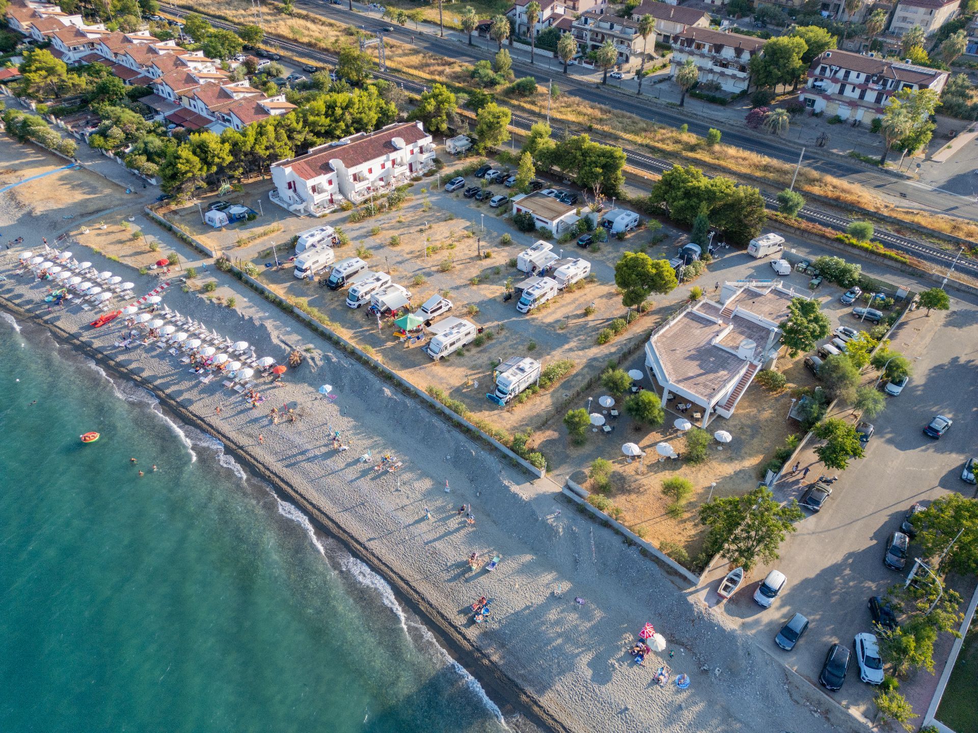 Il Campeggio-Villaggio Riva del Mare si trova sulla splendida Costa Ionica Calabrese, nel comune di Calopezzati, una località di origini medievali situata in posizione panoramica a 217 metri sul livello del mare. Il campeggio si sviluppa direttamente sulla marina di Calopezzati, a pochi passi dalla spiaggia, garantendo agli ospiti un accesso privilegiato al mare cristallino. La sua posizione strategica lo rende un punto di partenza ideale per scoprire il territorio circostante, dove storia, cultura e natura si fondono armoniosamente. A soli 3 km dal campeggio si trova il borgo storico di Calopezzati, dominato dal suggestivo Castello Normanno. Nei dintorni si possono visitare Corigliano Rossano con il suo famoso Museo Diocesano e del Codex, il Museo della Liquirizia "Giorgio Amarelli", il Museo Archeologico di Sibari e l'Abbazia Santa Maria del Patire. Per gli amanti della natura, la Sila e la Pre Sila offrono paesaggi incantevoli e boschi rigogliosi, raggiungibili in circa un'ora di auto.